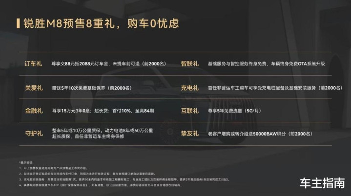 新程启幕,权益护航。预售期间下订用户可享限时权益,尊享价值至高2.98万元的八项专属好礼,全程尽享无忧体验。