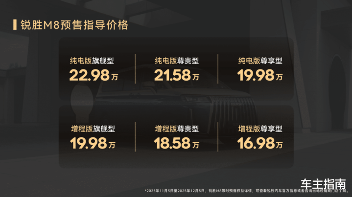 作为北京汽车制造厂孵化的独立MPV品牌,锐胜汽车持续深耕MPV细分市场,敏锐洞察用户未被满足的真实需求与市场空白。锐胜M8的推出七星,为用户提供了更全面的选择,进一步提升了出行的品质与体验。目前,锐胜M8预售已经开启,能否获得市场青睐,我们拭目以待!